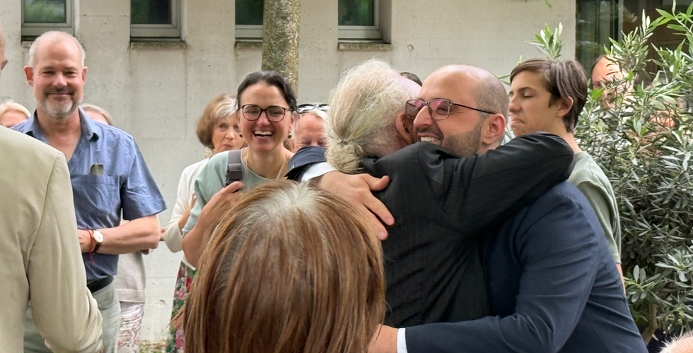 Beim Zusammensein gab es herrliche Ansprachen: ein eigens verfasstes Gedicht von unserem Hofpoeten Erwin Aschwanden, Moderator Felix übergab für Tipps an den „Man in Black“ Josip Knežević, der extra noch seine Sonnenbrille wie im Film aufsetze und dem Neuen Hoffnung und Durchhaltewillen zusprach. Aber ebenso auch diese wunderbare Pfarrei lobte. Mike wiederum betonte, dass er eigentlich gar nicht Pfarrer werden wollte, sich aber nun gerne in den Dienst nehmen lasse, denn die Zeichen waren eindeutig und nun stehe er mit Freude da! Auch Claudia Haltenberger schilderte die erfolgreiche Suche nach dem geeignetsten Pfarrer, übergab einen Olivenbaum der nun wachsen dürfe und ein geheimnisvolles kleines Tütchen. Thomas Pandiani, Kirchenpflege Rüschlikon, ergriff ebenfalls das Wort: Es wäre nicht nur ein Probejahr für sie sondern auch Mike Qerkini habe die Möglichkeit nach einem Jahr Bilanz zu ziehen. Darum mögen doch alle offen und hilfsbereit sein! Seinerseits versprach er Offenheit und Unterstützung.
