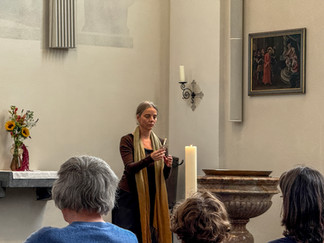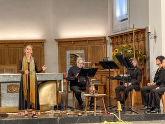 Die Erzählerin Moni Egger, promovierte Theologin, Märchen- und Bibelerzählerin, liess mit eindringlichen Stimme und ihrer lebendigen Darstellung das Leben der Wiborada von Kindheit bis Tod aufscheinen. Frei erzählend, ohne Hilfsmittel, führte sie die Zuhörenden ins frühe Mittelalter – und zugleich mitten ins Heute, indem sie die Fragen nach Vertrauen, Stärke und geistlicher Klarheit erfahrbar machte: phänomenal und unvergesslich!